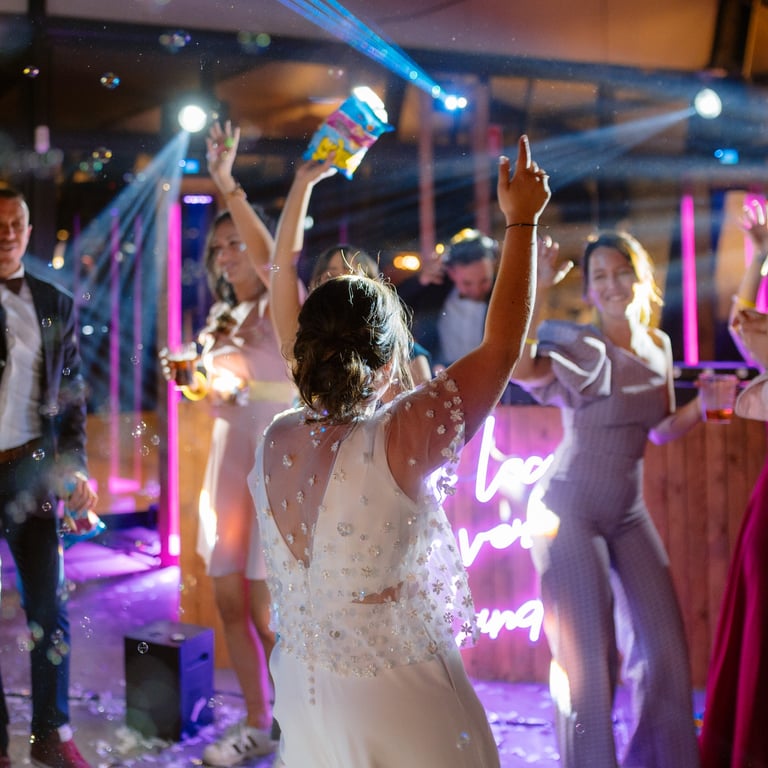 La fiesta subió de nivel gracias a Mas&Mas Weddings, que se encargaron de dar un gran espectáculo y un sonido increíble que dejó a todos con la boca abierta. Dos días completos de celebración, sin que faltara ningún detalle.