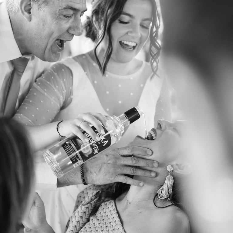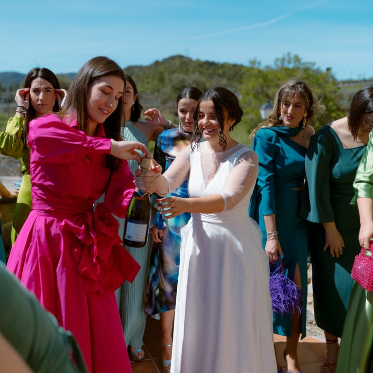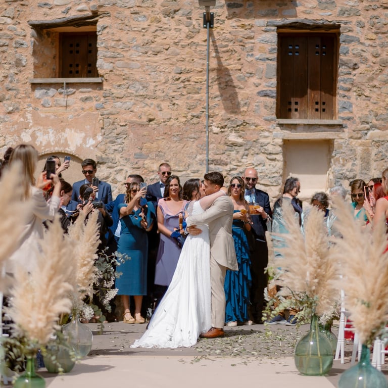 El viernes, los invitados llegaron y transformaron el exclusivo pueblo en su hogar por dos días. Cada uno se convirtió en un habitante más, dándole vida al lugar. La charanga y el "Ball de diables", traídos desde Tarragona, convirtieron la boda en una auténtica fiesta popular, pero lo mejor de todo: en familia.